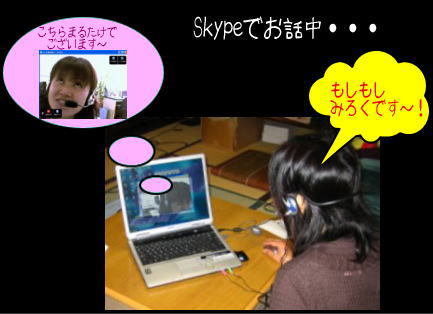 まるたけさんが、ウエブカメラを買ったので、スカイプで電話したら、事務員さんのかわいいHさんが、登場しました。smiletulip